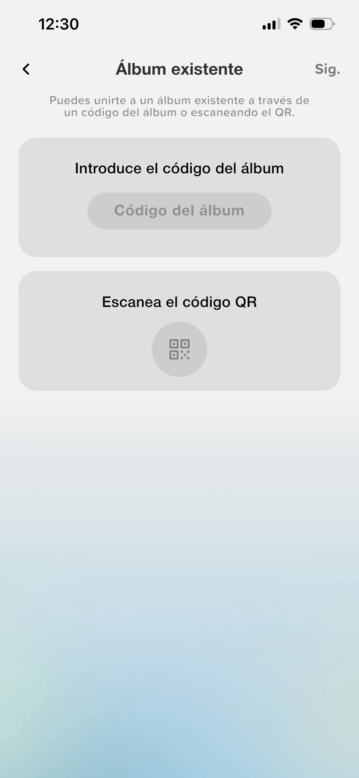 4. Al acceder, podrás introducir el código del álbum, que encontrarás en el apartado Dots Memories de nuestra página web, o bien escanear el código QR que aparece en esa misma sección.